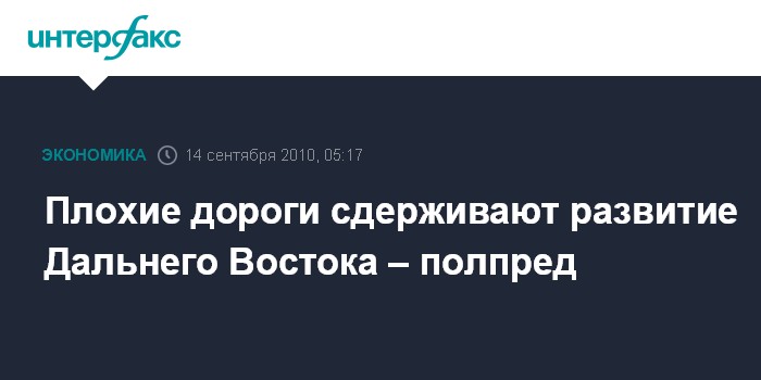 "Отсутствие дорог - это колоссальнейший фактор, который сдерживает экономическое развитие Дальнего Востока. Транспортная инфраструктура на Востоке России должна развиваться опережающе. Строительство дорог в планах есть. Но без поддержки государства, федерального правительства ничего не разовьешь, здесь необходима федеральная целевая программа", - сказал полпред.