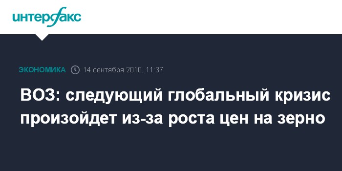 ВОЗ: следующий глобальный кризис произойдет из-за роста цен на зерно