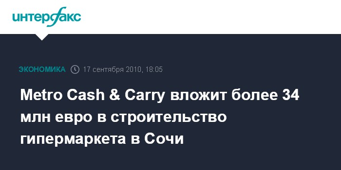 Сочи. 17 сентября. INTERFAX.RU - Германский ритейлер Metro Cash & Carry, администрация Краснодарского края и городские власти Сочи подписали соглашение о намерениях по реализации инвестиционного проекта.