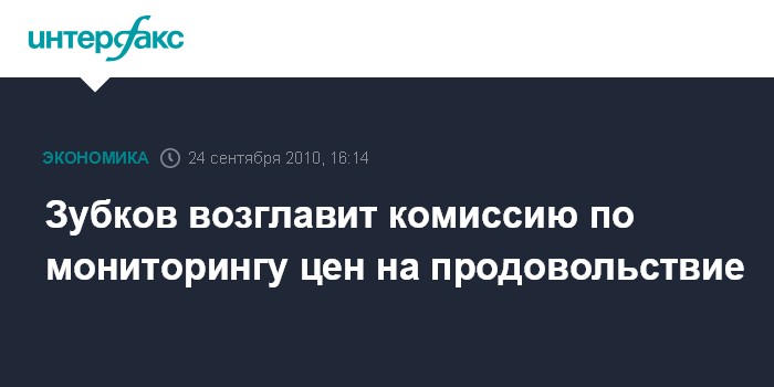 Москва. 24 сентября. INTERFAX.RU - Первый вице-премьер РФ Виктор Зубков возглавит правительственную комиссию по мониторингу и оперативному реагированию на изменение конъюнктуры продовольственных рынков.