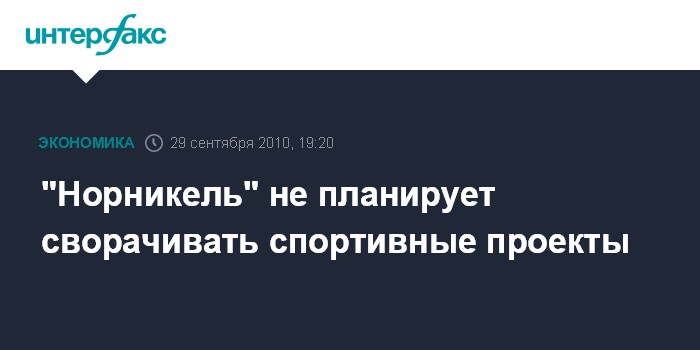 Москва. 29 сентября. INTERFAX.RU - ОАО "ГМК "Норильский никель" сейчас не намерено сворачивать свои спортивные проекты, на сегодняшний день включающие в себя три клуба - баскетбольный и хоккейный ЦСКА, а также мини-футбольный клуб "Норильский никель".