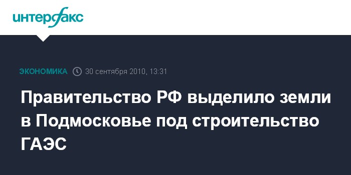 Москва. 30 сентября. INTERFAX.RU - Правительство РФ выделило 211,05 га земли Сергиево-Посадского лесничества в Московской области под строительство гидроаккумулирующей электростанции (ГАЭС).