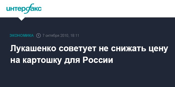 Копыль (Минская обл.). 7 октября. INTERFAX.RU - Президент Белоруссии Александр Лукашенко доволен, что белорусский картофель хорошо покупают в РФ, он рекомендует пользоваться рыночной конъюнктурой и держать цену.