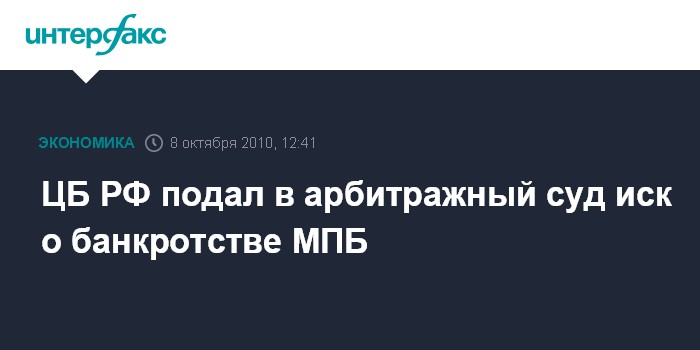 ЦБ РФ подал в арбитражный суд иск о банкротстве МПБ