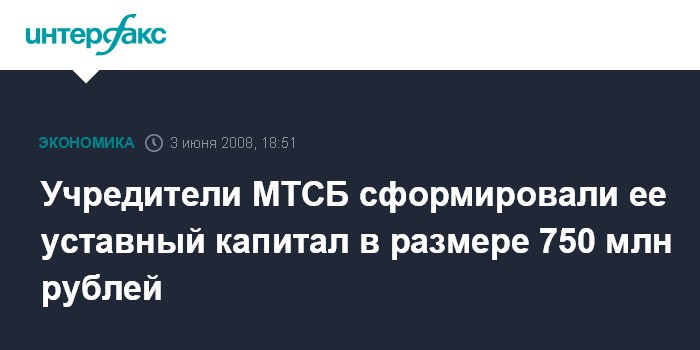 Учредители МТСБ сформировали ее уставный капитал в размере 750 млн рублей