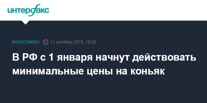 Москва. 11 октября. INTERFAX.RU - В перечень алкогольной продукции, на которую в этом году были введены минимальные цены, с 1 января 2011 года будет включен коньяк.