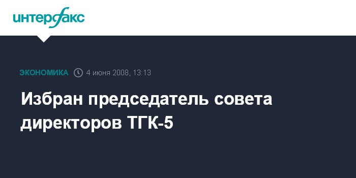 Москва. 4 июня. INTERFAX.RU - Председателем совета директоров ОАО "ТГК-5" избран старший вице-президент - руководитель центра реализации стратегии ЗАО "Комплексные энергетические системы" ("КЭС") Алексей Глущенко, сообщила пресс-служба ТГК-5. Заместителем председателя совета директоров ТГК-5 избран старший вице-президент по стратегическим коммуникациям и региональной политике ЗАО "КЭС" Марат Баширов.