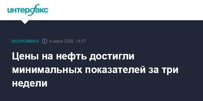 Москва. 4 июня. INTERFAX.RU - Цена на нефть достигла минимума трех недель на падении мирового спроса на топливо, сообщило агентство Bloomberg.