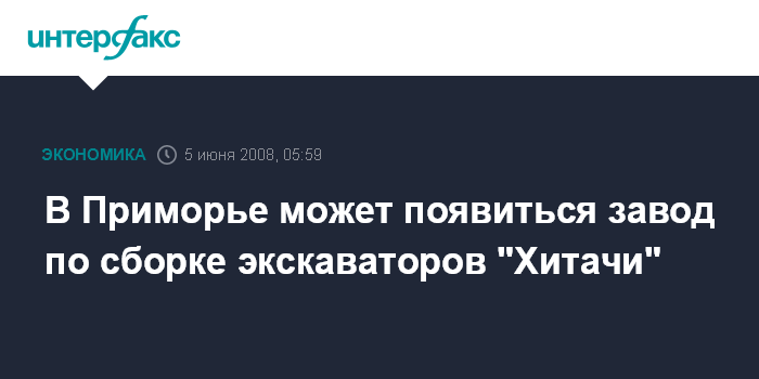 Владивосток. 5 июня. ИНТЕРФАКС-ДАЛЬНИЙ ВОСТОК - Японская компания "Hitachi Construction Machinery" рассматривает возможность размещения в Находке (Приморский край) завода по сборке экскаваторов.