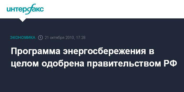 Москва. 21 октября. INTERFAX.RU - Правительство РФ в целом одобрило программу энергосбережения, заявил глава Минэнерго Сергей Шматко.