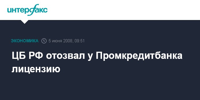 ЦБ РФ отозвал у Промкредитбанка лицензию