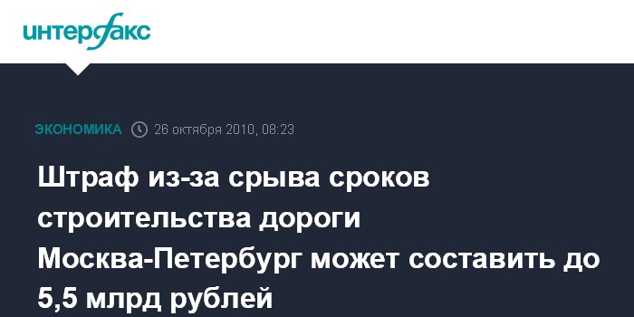 Штраф из-за срыва сроков строительства дороги Москва-Петербург может составить до 5,5 млрд рублей