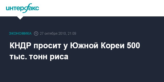 Сеул. 27 октября. INTERFAX.RU - Представители КНДР попросили у Южной Кореи передать им в качестве гуманитарной помощи 500 тыс. тонн риса и 300 тыс. тонн удобрений, сообщает в среду южнокорейская газета The Korea Herald.