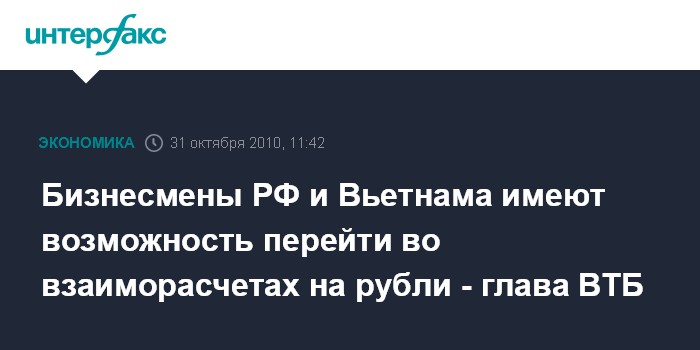 Бизнесмены РФ и Вьетнама имеют возможность перейти во взаиморасчетах на рубли - глава ВТБ