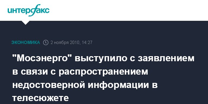Москва. 2 ноября. INTERFAX.RU - В связи с выходом 31 октября 2010 г. в телевизионной программе "Вести Москва" сюжета "Двойные платежи", содержащего непроверенную и недостоверную информацию о деятельности ОАО "Мосэнерго", которая впоследствии была растиражирована другими СМИ, заявляем следующее: