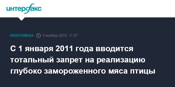 С 1 января 2011 года вводится тотальный запрет на реализацию глубоко замороженного мяса птицы