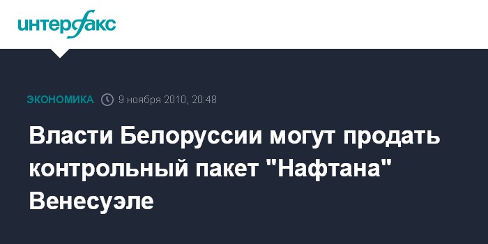 Минск. 9 ноября. INTERFAX.RU - Белорусский первый вице-премьер Владимир Семашко не исключил, что в Белоруссии может быть принято решение о продаже контрольного пакета ОАО "Нафтан" Венесуэле.