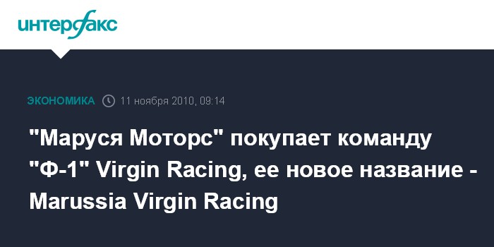 "Маруся Моторс" покупает команду "Ф-1" Virgin Racing, ее новое название - Marussia Virgin Racing