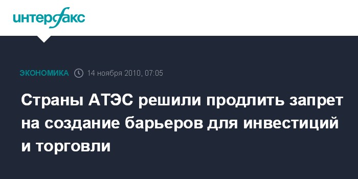Страны АТЭС решили продлить запрет на создание барьеров для инвестиций и торговли