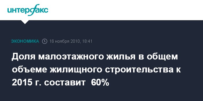 Доля малоэтажного жилья в общем объеме жилищного строительства к 2015 г. составит 60%