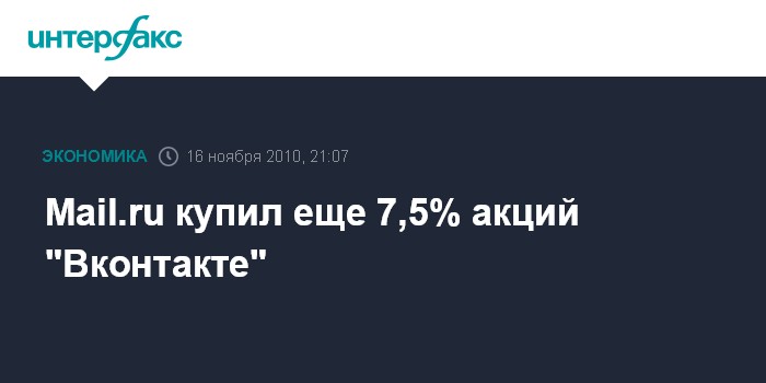 Mail.ru купил еще 7,5% акций "Вконтакте"
