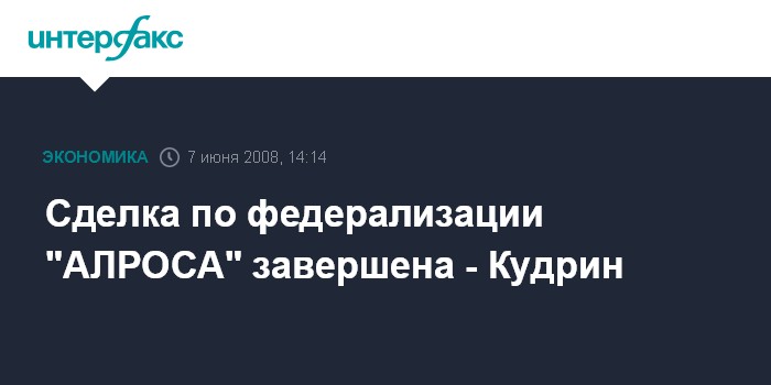 Сделка по федерализации "АЛРОСА" завершена - Кудрин