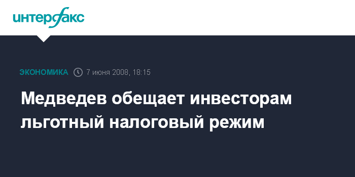 Москва. 7 июня. INTERFAX.RU - Россия намерена улучшить налоговые условия для инвесторов, снимать административные барьеры и бороться с коррупцией, заявил президент РФ Дмитрий Медведев. "Сейчас готовится ряд предложений по улучшению для инвесторов налоговых условий. Речь идёт о стимулировании вложений в человеческий капитал. В частности, прорабатывается вопрос об освобождении от налогообложения расходов на корпоративное образование и медицинское страхование", - рассказал он на встрече с инвесторами в рамках Петербургского экономического форума.