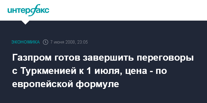 Газпром готов завершить переговоры с Туркменией к 1 июля, цена - по европейской формуле