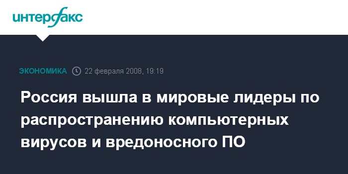 Сан-Франциско. 22 февраля. INTERFAX.RU - Россия стала мировым лидером в распространении компьютерных вирусов, вредоносного и шпионского программного обеспечения, опередив Китай и США.