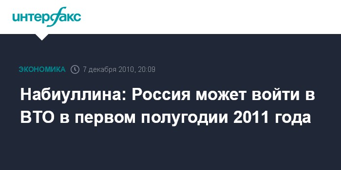 Набиуллина: Россия может войти в ВТО в первом полугодии 2011 года