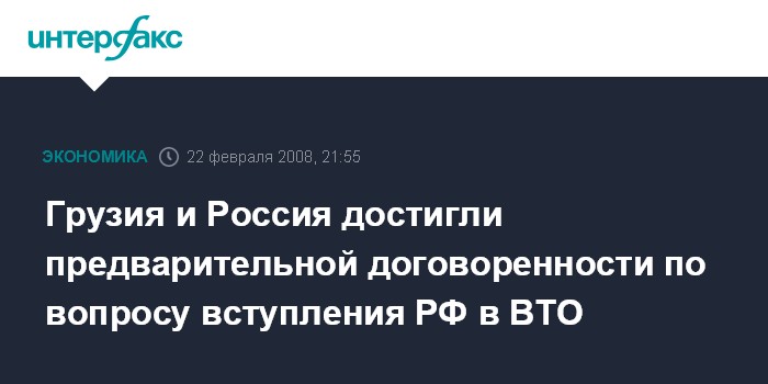 Грузия и Россия достигли предварительной договоренности по вопросу вступления РФ в ВТО