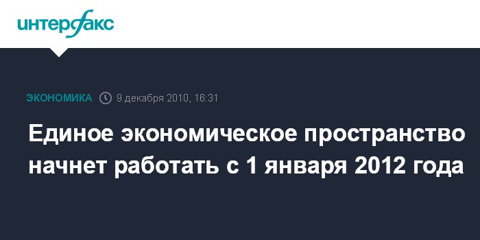 Единое экономическое пространство начнет работать с 1 января 2012 года