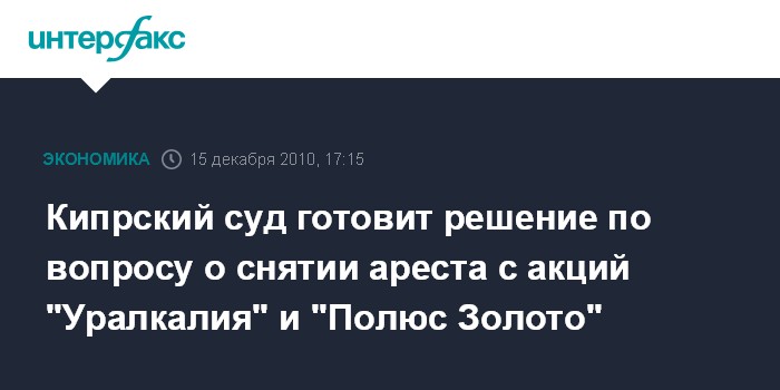 Кипрский cуд готовит решение по вопросу о снятии ареста с акций "Уралкалия" и "Полюс Золото"