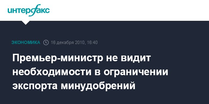 Москва. 16 декабря. INTERFAX.RU - Премьер-министр РФ Владимир Путин не видит необходимости в ограничении экспорта минеральных удобрений.