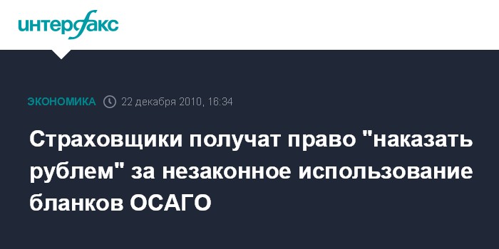 Страховщики получат право "наказать рублем" за незаконное использование бланков ОСАГО