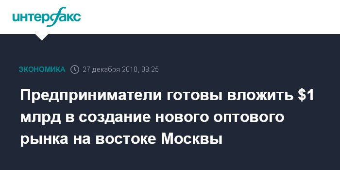 Предприниматели готовы вложить $1 млрд в создание нового оптового рынка на востоке Москвы