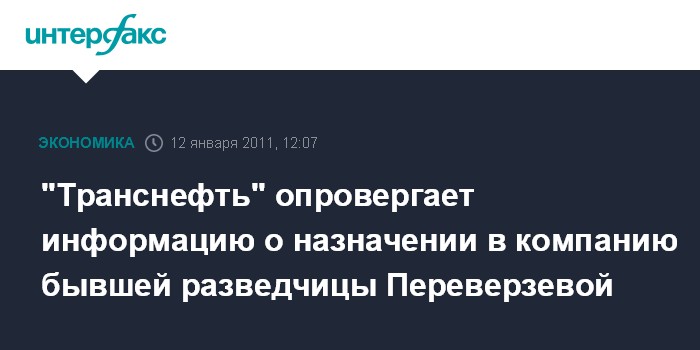 "Транснефть" опровергает информацию о назначении в компанию бывшей разведчицы Переверзевой