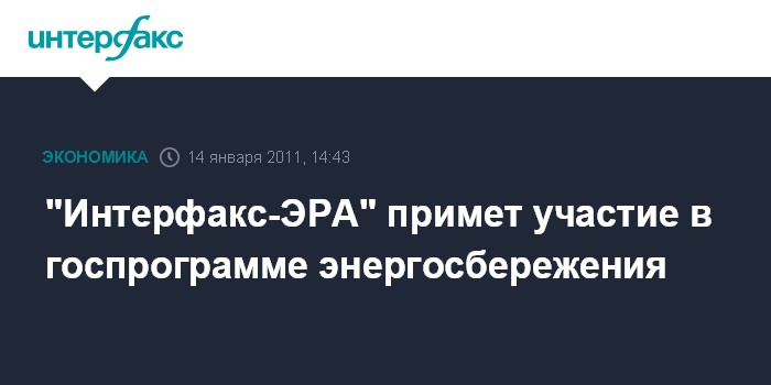 "Интерфакс-ЭРА" примет участие в госпрограмме энергосбережения