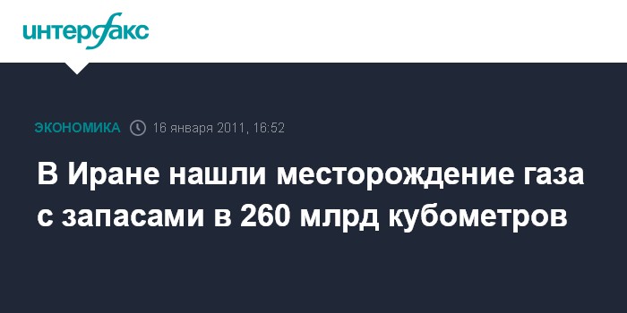 Тегеран. 16 января. INTERFAX.RU - Министр нефти Ирана Масуд Мирказеми объявил в воскресенье, что на юге страны обнаружено газовое месторождение, стоимость которого может оцениваться на $50 млрд, сообщает иранский телеканал "Пресс-ТВ". По его словам запасы природного газа на новом месторождении "Хайям", расположенного восточнее портового города Ассалуйе составляют 260 млрд кубометров. Из них 210 млрд кубометров являются извлекаемыми и находятся на суше, заявил он журналистам.