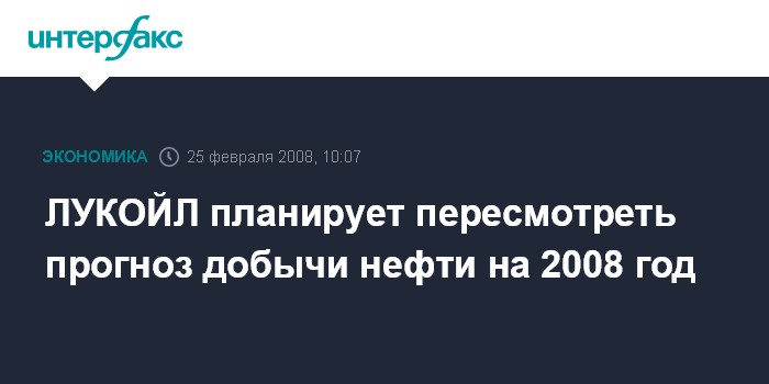 Москва. 25 февраля. INTERFAX.RU - "ЛУКОЙЛ" планирует пересмотреть прогноз добычи нефти на 2008 год, сообщил Агентству нефтяной информации (АНИ) вице-президент компании Леонид Федун.