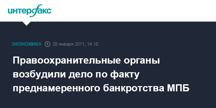 Правоохранительные органы возбудили дело по факту преднамеренного банкротства МПБ