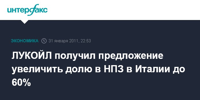 ЛУКОЙЛ получил предложение увеличить долю в НПЗ в Италии до 60%