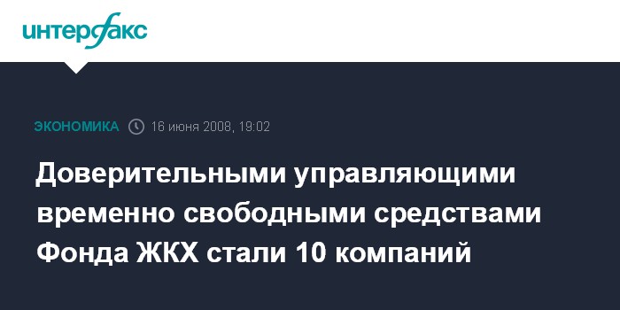 Доверительными управляющими временно свободными средствами Фонда ЖКХ стали 10 компаний