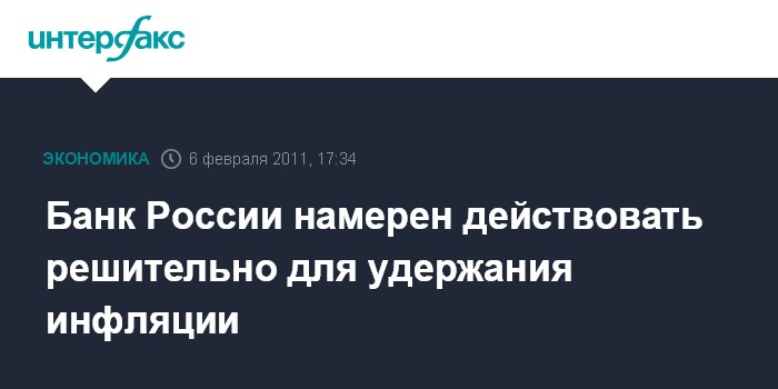 Банк России намерен действовать решительно для удержания инфляции