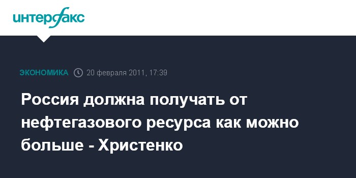 Россия должна получать от нефтегазового ресурса как можно больше - Христенко