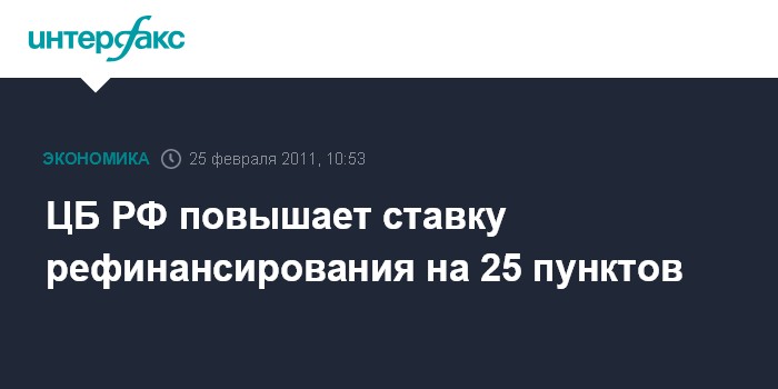ЦБ РФ повышает ставку рефинансирования на 25 пунктов
