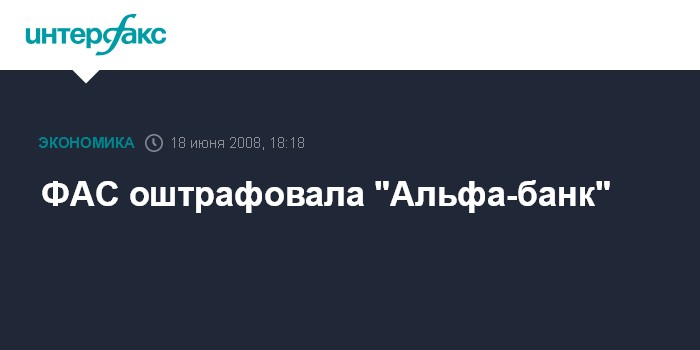 Москва. 18 июня. INTERFAX.RU - Управление федеральной антимонопольной службы (УФАС) по Татарстану оштрафовало Альфа-банк на 150 тыс. руб., говорится в сообщении пресс-службы ведомства.