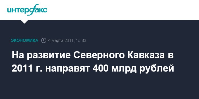На развитие Северного Кавказа в 2011 г. направят 400 млрд рублей