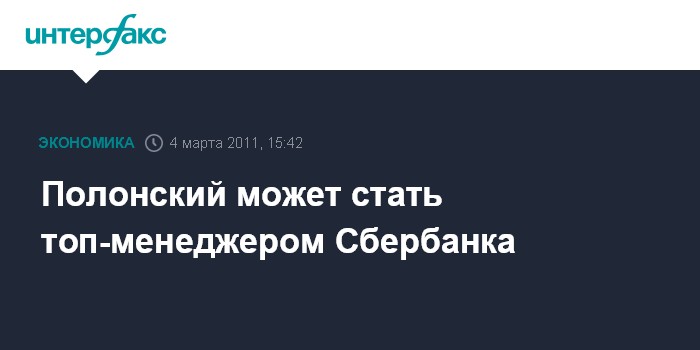 Москва. 4 февраля. INTERFAX.RU - Председатель совета директоров Mirax Group Сергей Полонский, 3 марта попросивший не считать его больше бизнесменом и заявивший о ликвидации бренда Mirax, в ближайшее время может стать топ-менеджером Сбербанка РФ, заявил "Интерфаксу" в пятницу источник на рынке недвижимости, знакомый с ситуацией вокруг компании.