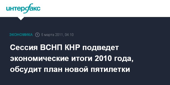 Сессия ВСНП КНР подведет экономические итоги 2010 года, обсудит план новой пятилетки